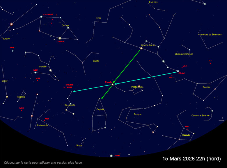 Constellation circumpolaire (c’est à dire qui tourne autour de l’étoile polaire sans jamais disparaître sous l’horizon), elle est le repère fondamental pour trouver l’étoile polaire et les autres constellations principales du ciel