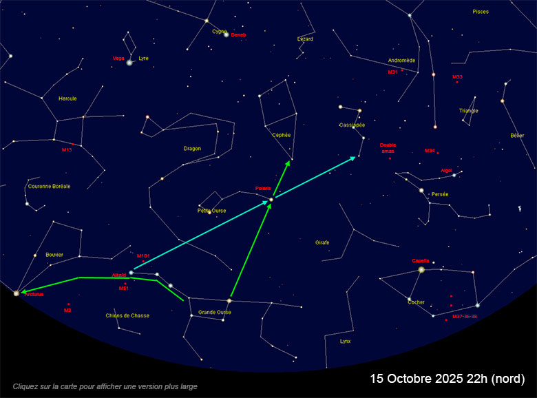 Constellation circumpolaire (c’est à dire qui tourne autour de l’étoile polaire sans jamais disparaître sous l’horizon), elle est le repère fondamental pour trouver l’étoile polaire et les autres constellations principales du ciel