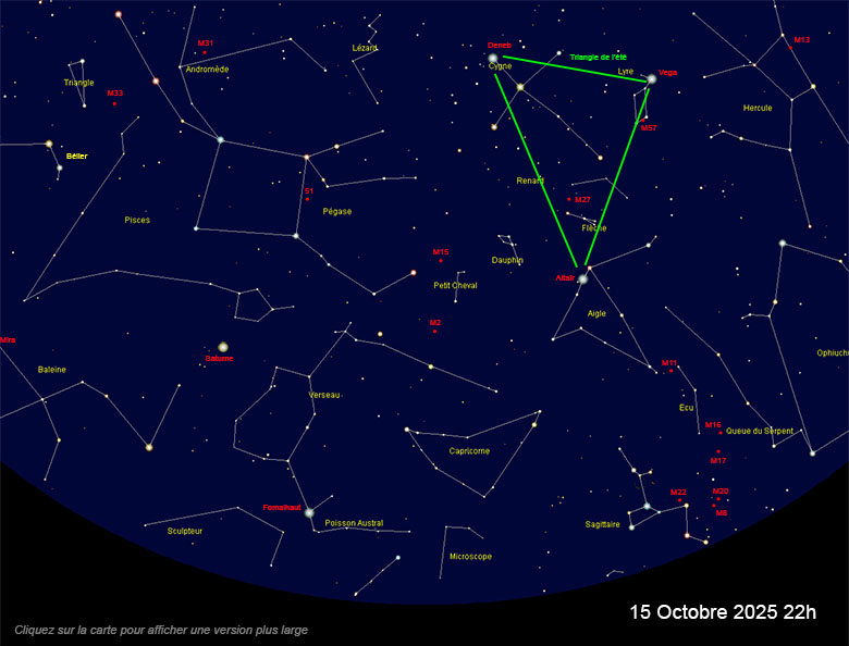 du ciel boréal (après Sirius et Arcturus). Avec Deneb (du Cygne) et Altaïr (de l’Aigle), hors de la carte du mois mais visibles vers l’Est dès le début de nuit, elle forme le fameux « Triangle d’été », figure bien utile pour se repérer